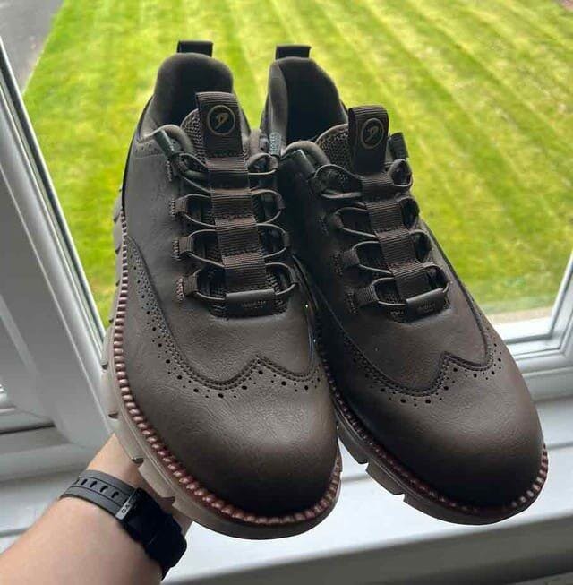 The shoe has a non-slip rubber sole that provides excellent grip even on rainy days.